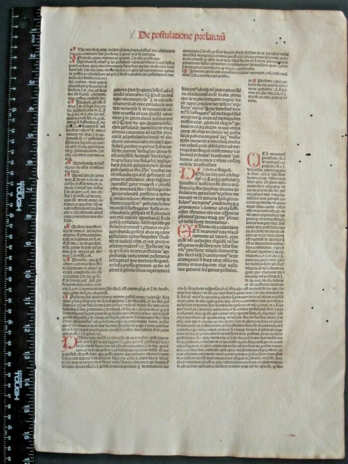 LARGE 1486 Incunable Leaf from the Decretales of Gregory IX Incunabula