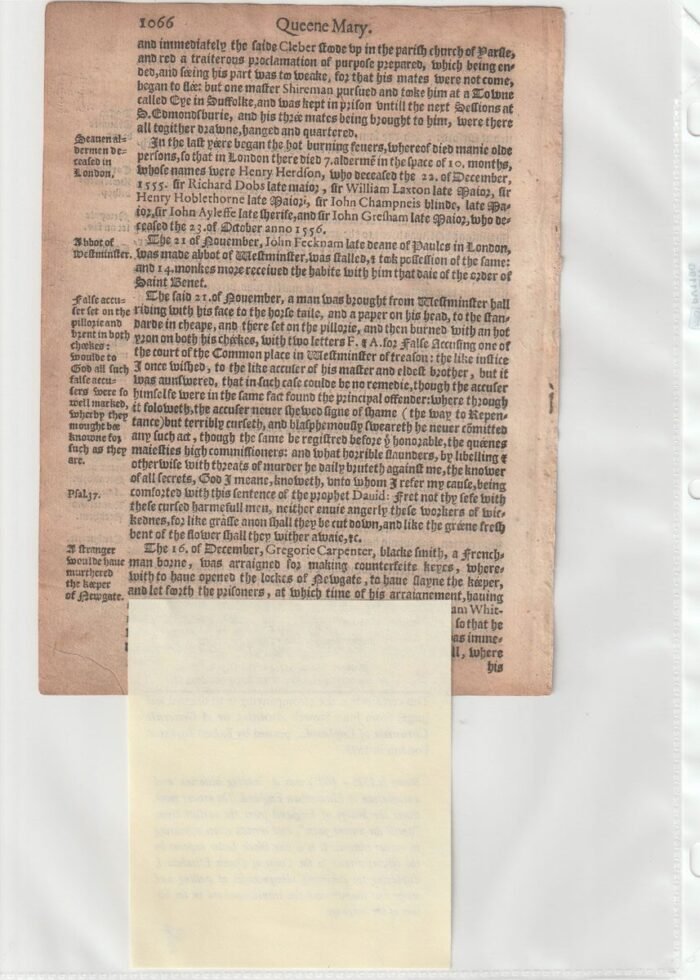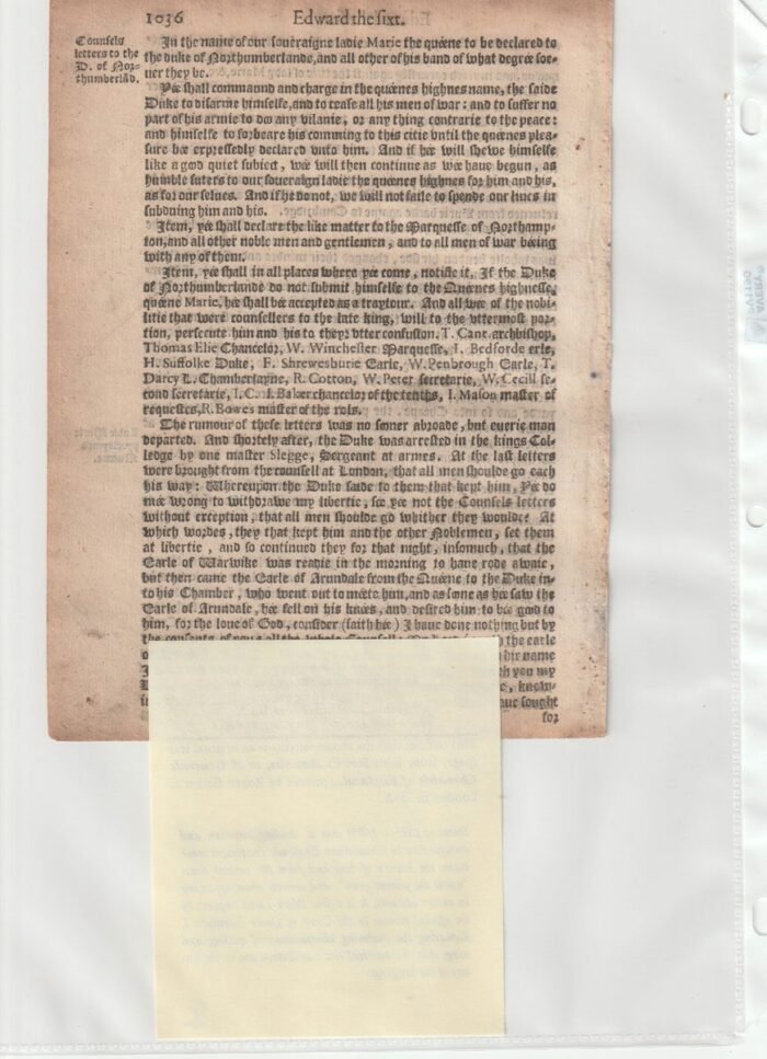 A printed leaf from John Stow’s “Annales, or A Generale Chronicle of England” printed by Robert Barker at London in 1592. John Stow (c. 1525-1605) was a leading historian and antiquarian in Elizabethan England.