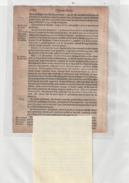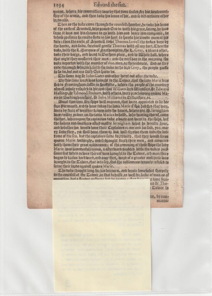 $99.99A printed leaf from John Stow’s “Annales, or A Generale Chronicle of England” printed by Robert Barker at London in 1592. John Stow (c. 1525-1605) was a leading historian and antiquarian in Elizabethan England.
