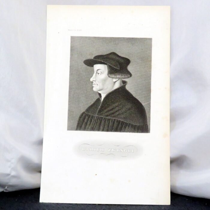 Antique print of Huldrych Zwingli (1484-1531) C. L. Meyers engraving from 1820.