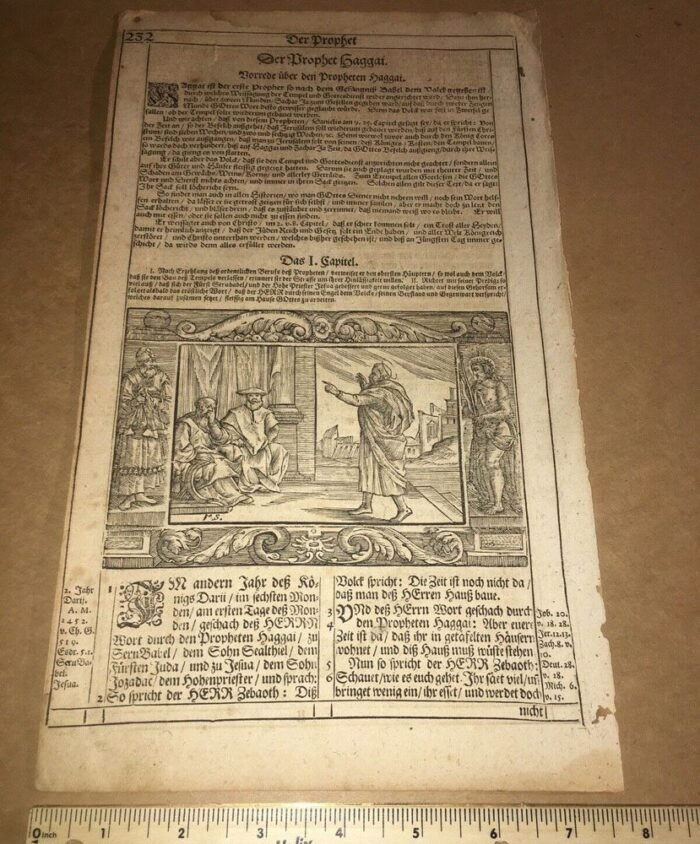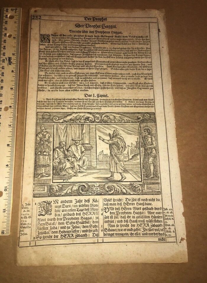 1670 German Luther Bible Leaf With a Woodcut Printed in Wittenberg Germany
