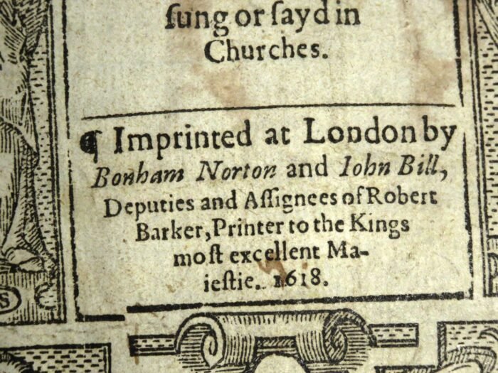 1618 Book of Common Prayer, Psalter & Book of Psalms printed by Bonham Norton and John Bill – Rare Early