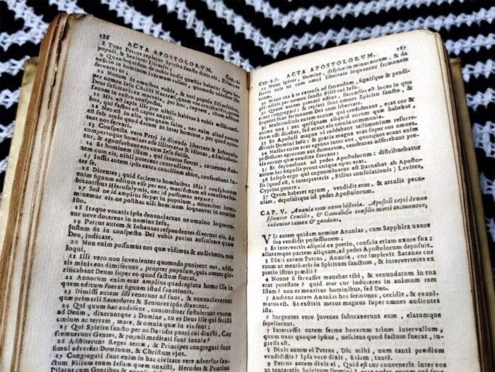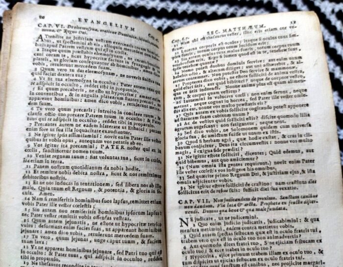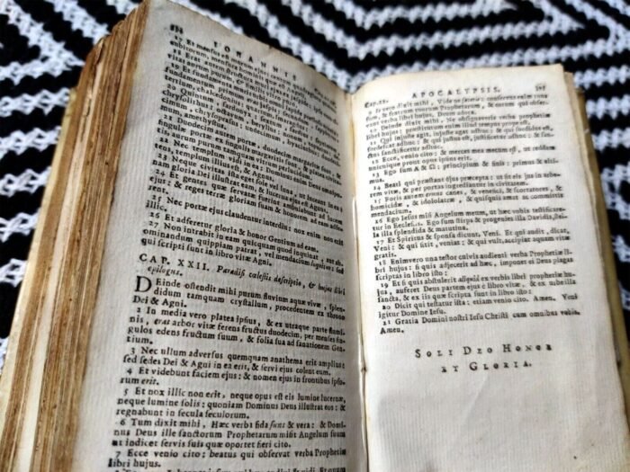This is a Vulgate Bible Commentary – published in five (5) volumes in Paris, 1643; the first three and last two volumes relate respectively to the Old and New Testaments. This Vulgate is the first Latin translation, from the Septuagint, dating from the 4th century. (century of the Edict of Milan) and attributed to Saint Jerome; said translation was the reference for a long time.