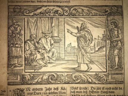 1670 German Luther Bible Leaf With a Woodcut Printed in Wittenberg Germany