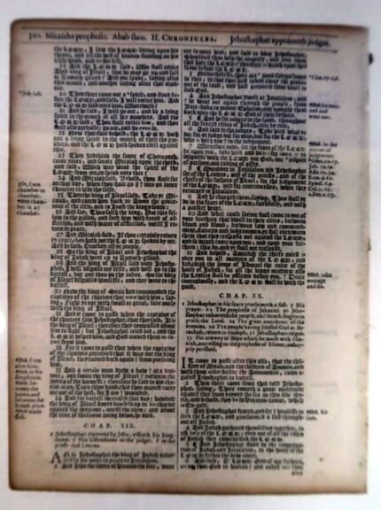 A rare 1683 King James Version combined with Geneva Bible notes from the 1599 edition and Theodore Beza. Contains almost 1000 pages with notes on the complete Bible ,making this a veritable library of study and classic Protestant commentary in just one book. These annotations which are an important part of the Geneva Bible were Calvinistic and Puritan in character, and as such ,they were disliked by the ruling conservative Protestants of the Church of England as well as King James I, who commissioned the Authorized Version or King James Bible to replace it. The Geneva Bible had also motivated the production of the Bishops’ Bible under Elizabeth I, for the same reason, and later the Douay- Rheims edition by the recusant Papists. The Geneva Bible remained popular among Puritans and was their beloved translation of choice in use until after the English Civil War. The final 17th century printing was completed in 1644 in Amsterdam with the preceding 1640 edition being the first that deliberately omitted the Apocrypha. The Geneva notes were first included in an edition of the King James Bible in 1642 and printed in subsequent editions as late as 1715.