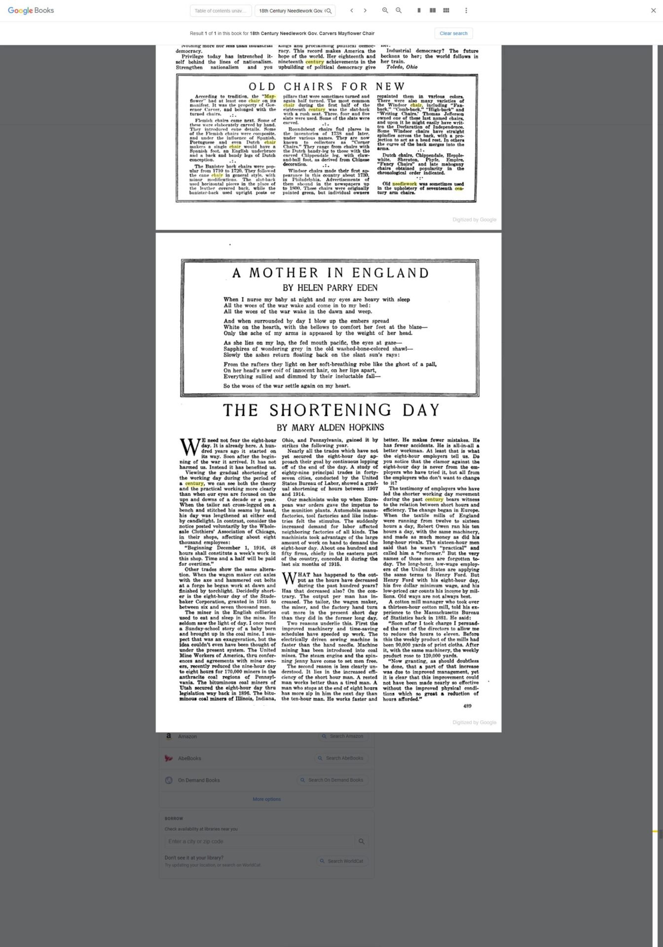 18th Century Silk Needlework Bookmark Governor John Carver Mayflower Chair – Americana