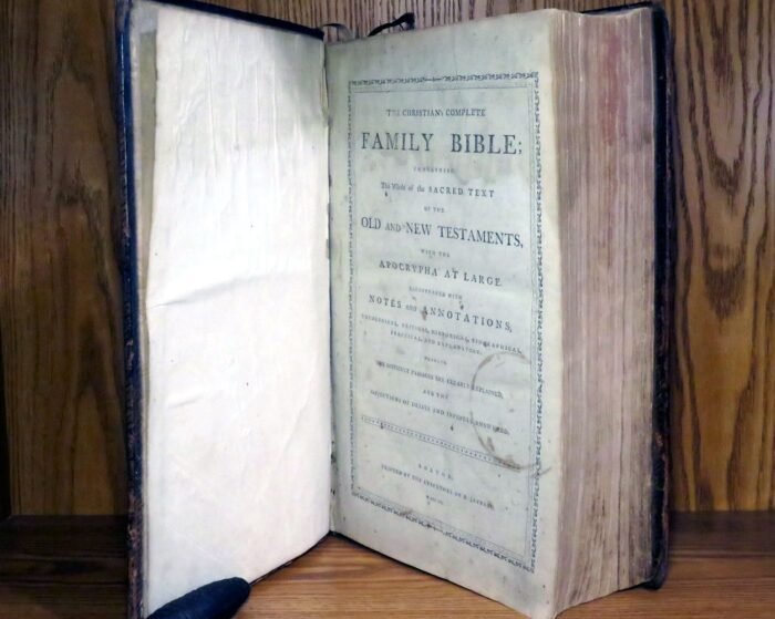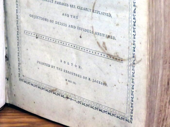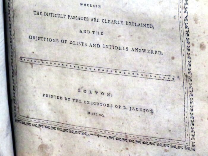 This is a 1790 King James “The Christian’s Complete Family Bible” printed by the Executors of B Jackson – Bolton England.
